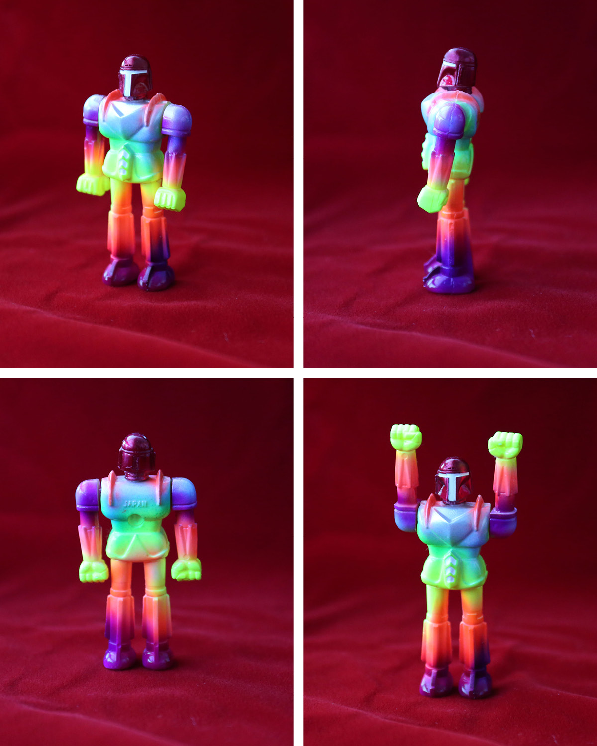You will receive one highly detailed action figure with 2 points of articulation (just like the original die-cast micro Shogun Warriors) that stands approximately 3.5 inches tall. Each figure is carded on an action figure cardback with a blister bubble. This art toy is not a toy. Recommended for ages 30 and up.