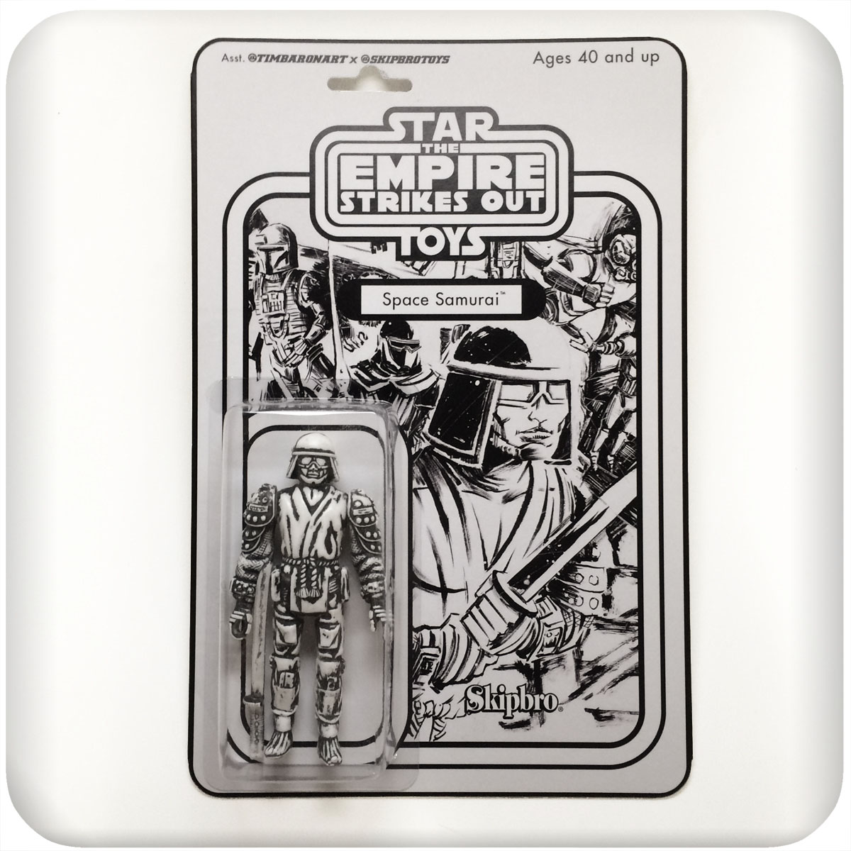 You will receive one highly detailed action figure with 5 points of articulation that stands approximately 3.75 inches tall and comes with 3 accessories; a samurai sword, a 3D printed "light sword", and a 3D printed figure stand. Each figure is carded on an action figure cardback featuring art by Tim Baron! This art toy is not a toy. Recommended for ages 30 and up.