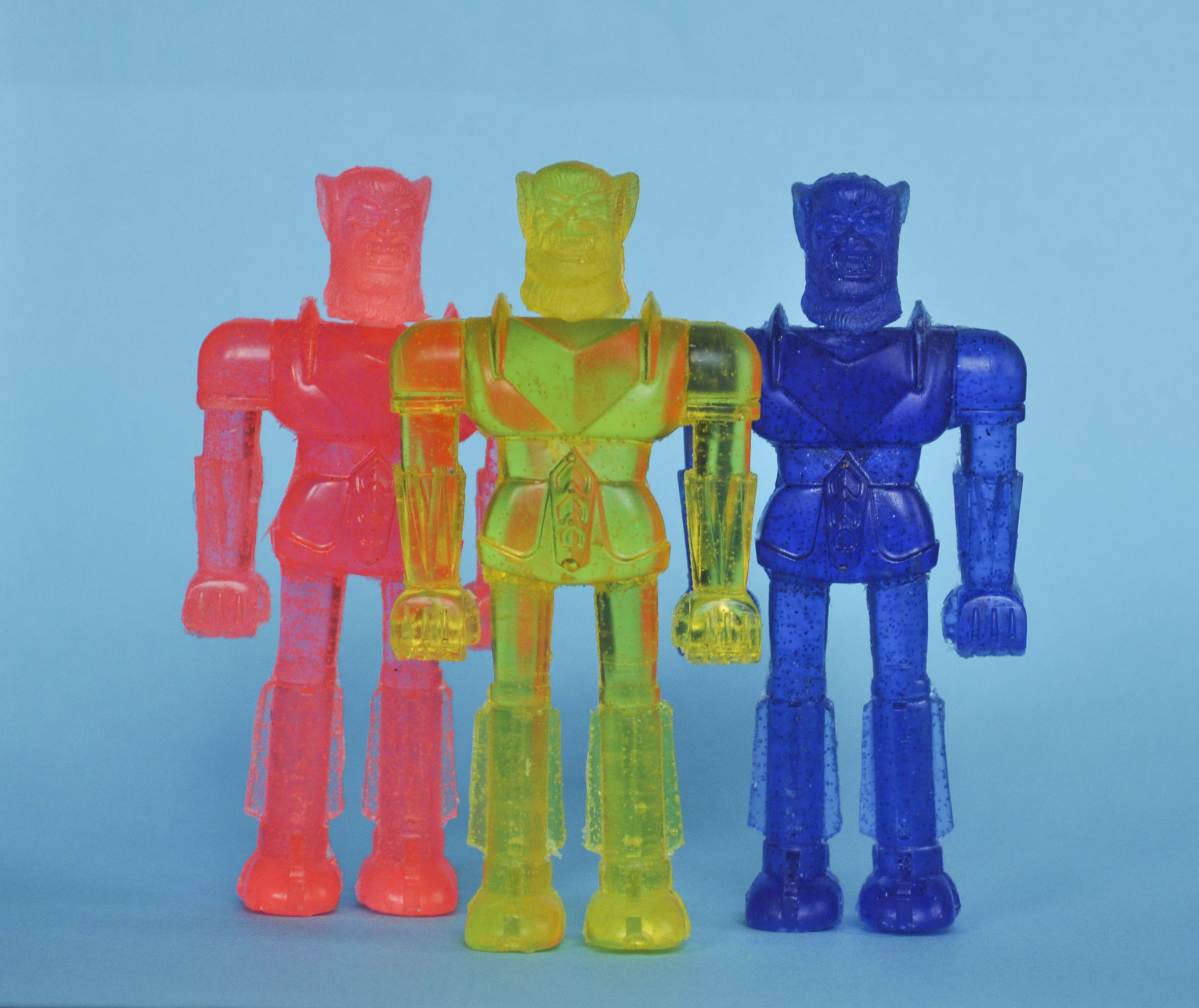 Hand cast in colored plastic (not painted), each Universal Shogun is packed in a custom made Japanese style box with designs reminiscent of the vintage Shogun Warriors line from the 1970's.