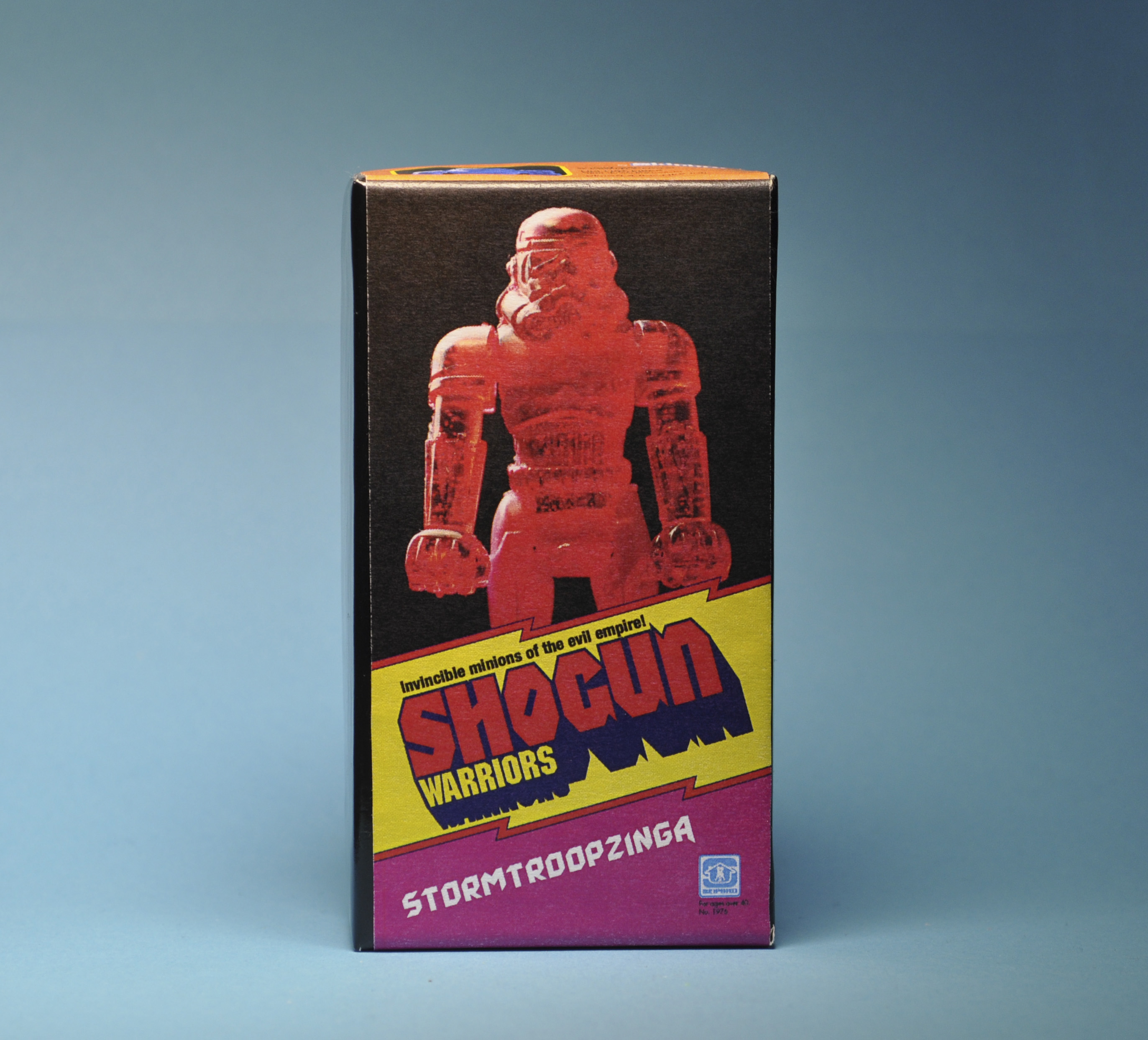 Hand cast in colored plastic (not painted), each Universal Shogun is packed in a custom made Japanese style box with designs reminiscent of the vintage Shogun Warriors line from the 1970's.
