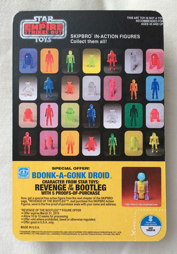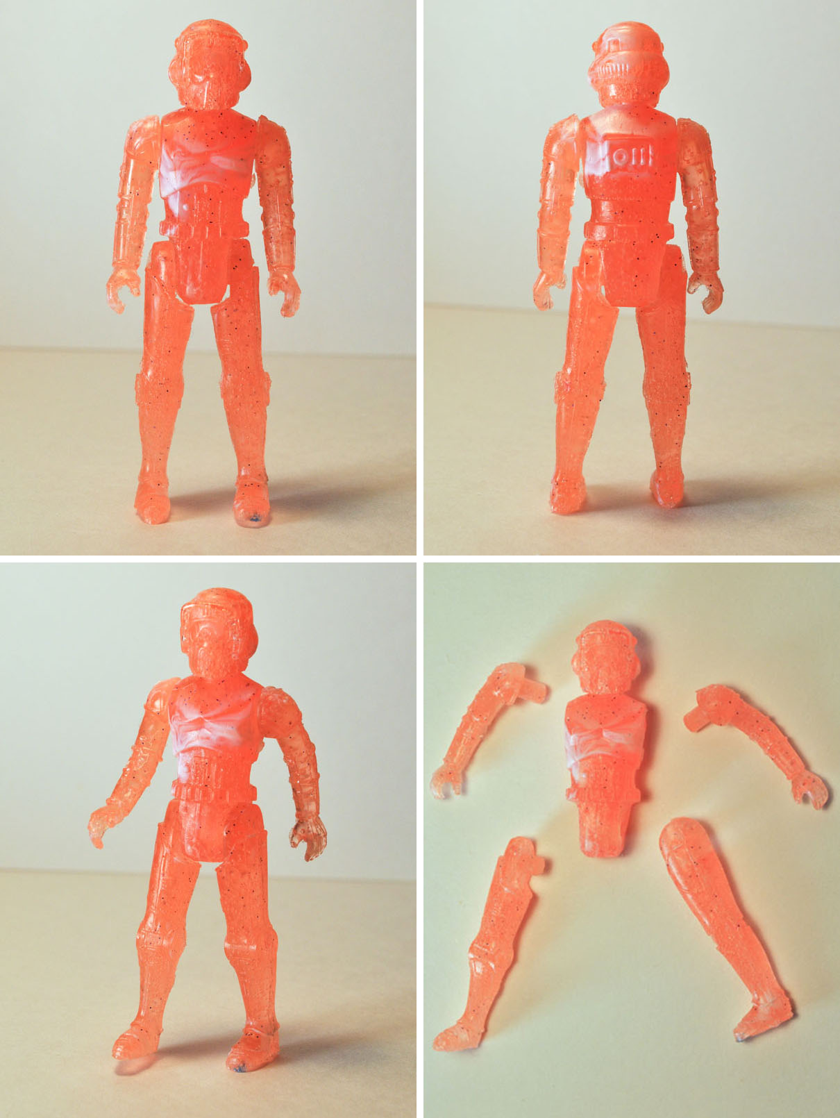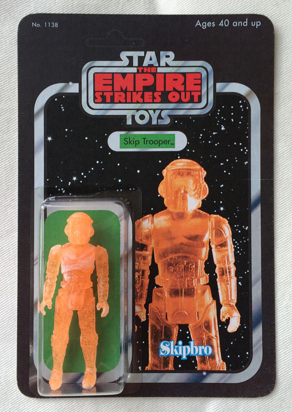 This Skip Trooper is hand cast in transparent orange colored plastic and comes carded on a custom card back.