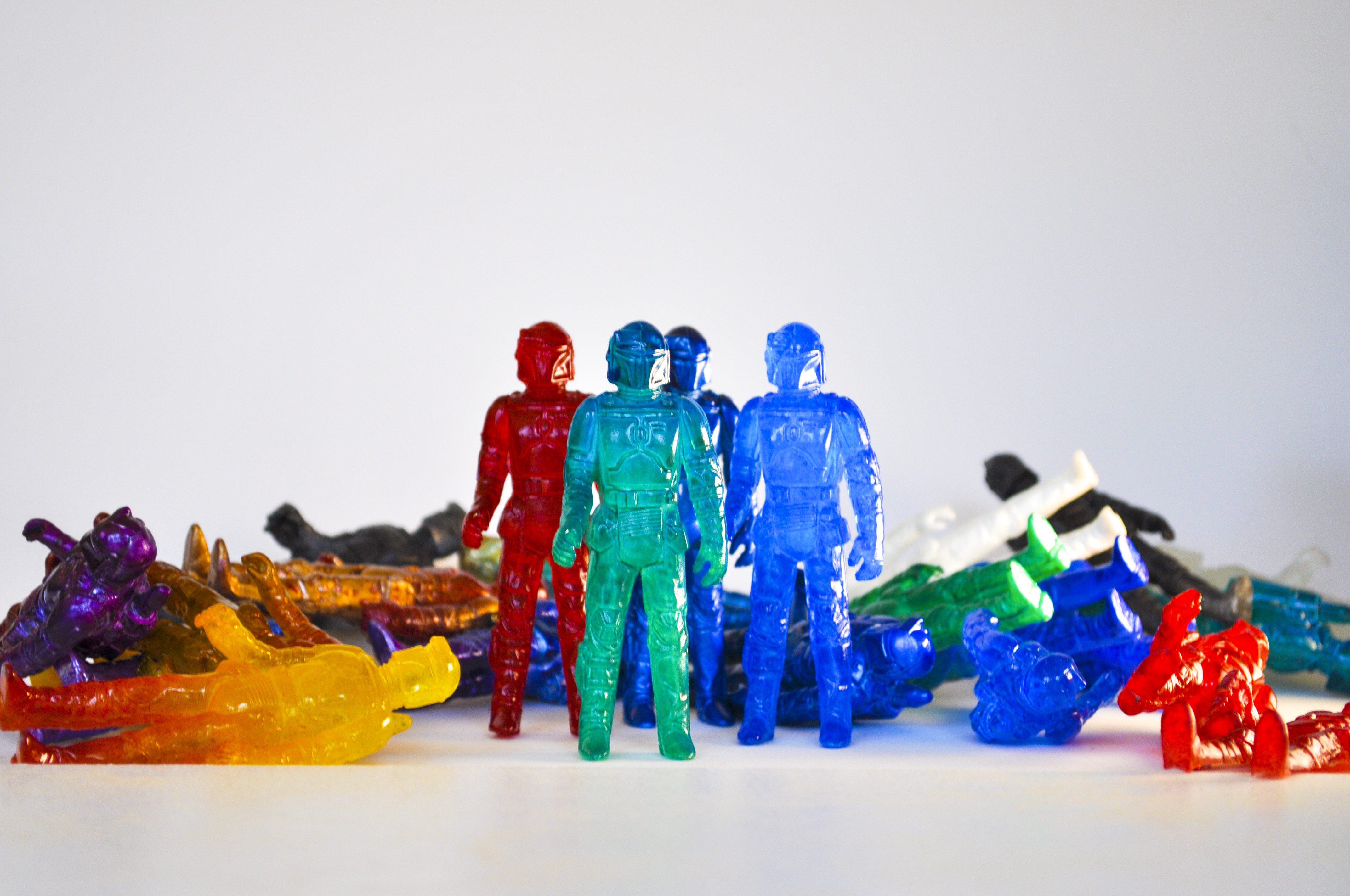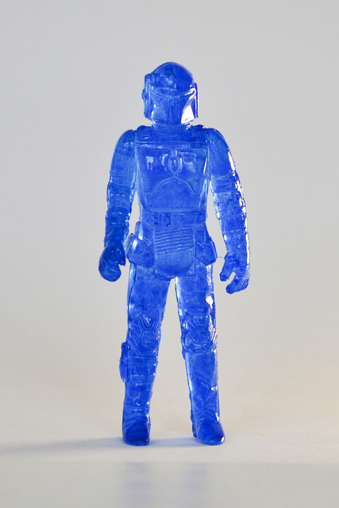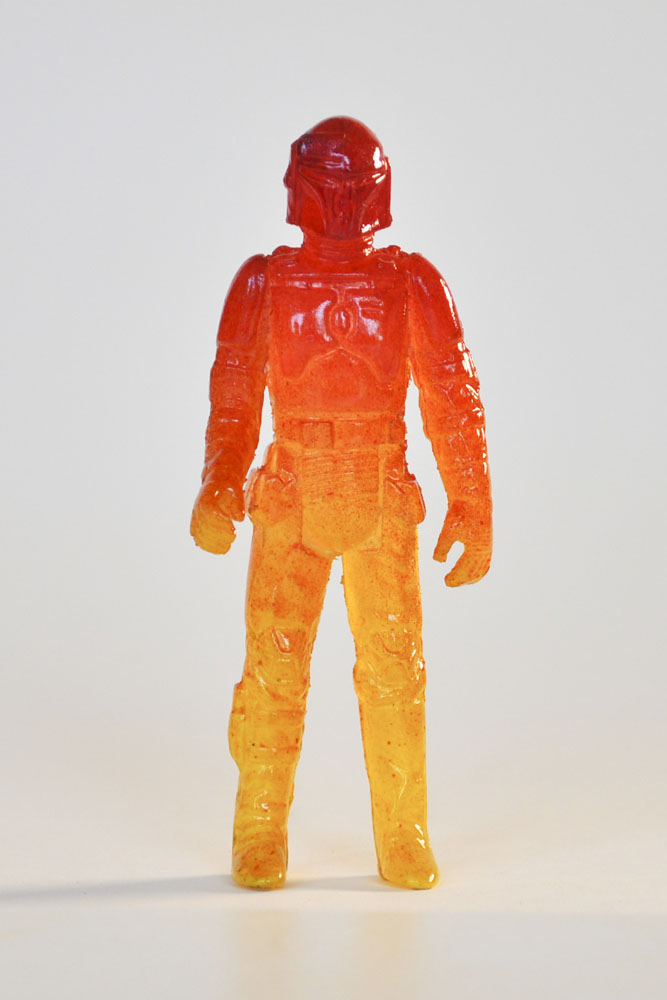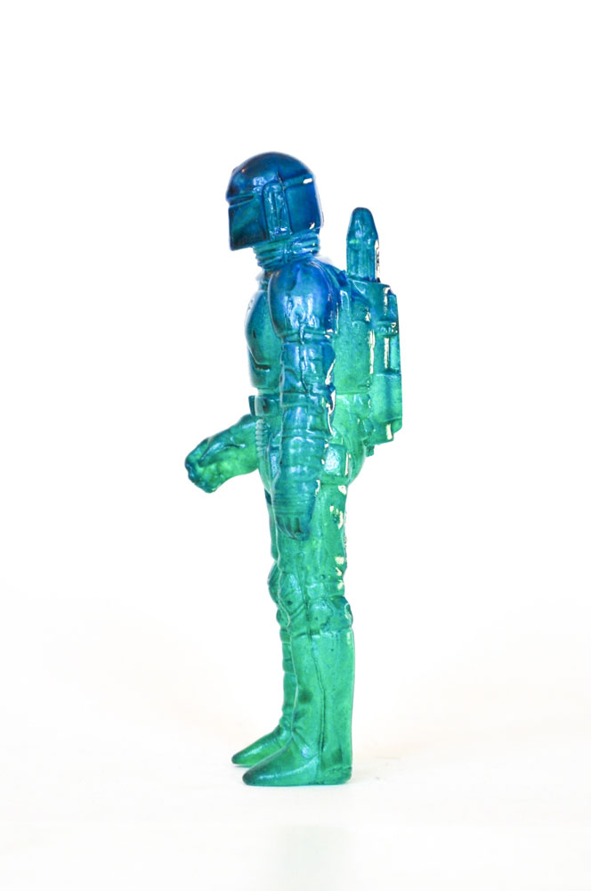 Recreated here in his un-articulated single-cast glory is a tribute to that Polish Bootleg Fett. Lovingly rendered in solid plastic and painted in modern, urban designer toy monster-kolor schemes. This art toy is not a toy. Recommended for ages 40 and up!