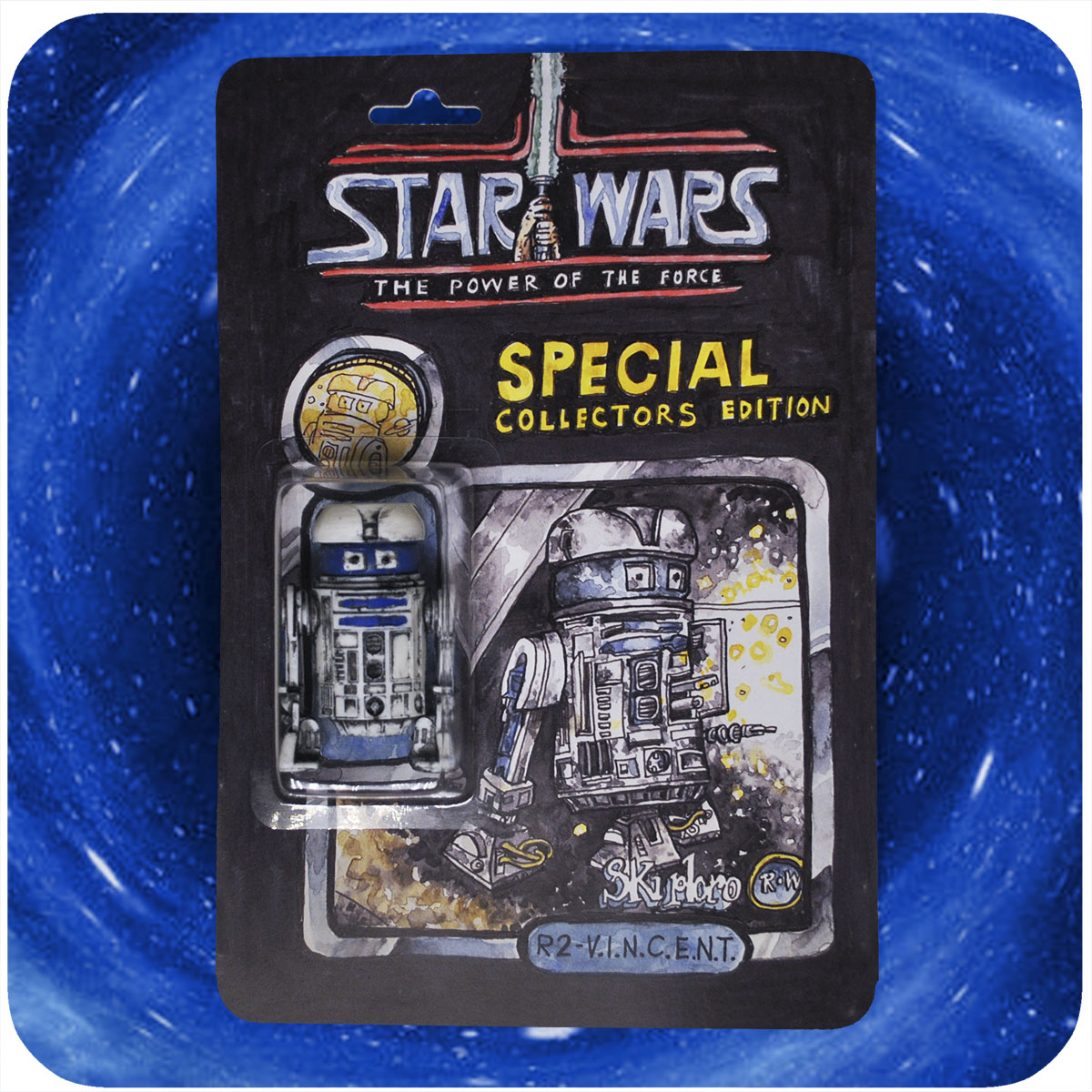 This "Blue Variant" R2-V.I.N.Cent features card art by artist @randowalker. In collaboration with @estereddie for concept and figure donations. The "Blue Variant" is a limited edition, just 6 figures were made.